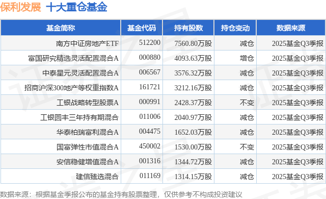 根据2025基金Q3季报公募基金重仓股数据,重仓该股的公募基金共73家,其中持有数量最多的公募基金为南方基金的南方中证房地产ETF。南方中证房地产ETF目前规模为74.18亿元,最新净值1.4961(12月29日),较上一交易日下跌0.41%,近一年下跌0.92%。该公募基金现任基金经理为罗文杰。罗文杰在任的基金产品包括:南方中证500ETF联接(LOF)A,管理时间为2013年4月22日至今,期间收益率为149.35%;南方中证500ETF,管理时间为2013年4月22日至今,期间收益率为157.6%;南方沪深300ETF,管理时间为2013年5月17日至今,期间收益率为153.79%;南方沪深300ETF联接A,管理时间为2013年5月17日至今,期间收益率为139.15%。