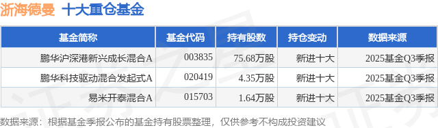 根据2025基金Q3季报公募基金重仓股数据,重仓该股的公募基金共3家,其中持有数量最多的公募基金为鹏华基金的鹏华沪深港新兴成长混合A。鹏华沪深港新兴成长混合A目前规模为8.53亿元,最新净值1.767(12月29日),较上一交易日上涨3.89%,近一年上涨46.68%。该公募基金现任基金经理为闫思倩。闫思倩在任的基金产品包括:鹏华新能源汽车混合A,管理时间为2022年7月26日至今,期间收益率为27.89%;鹏华碳中和主题混合A,管理时间为2023年5月5日至今,期间收益率为84.82%;鹏华科技驱动混合发起式A,管理时间为2024年8月29日至今,期间收益率为40.44%。