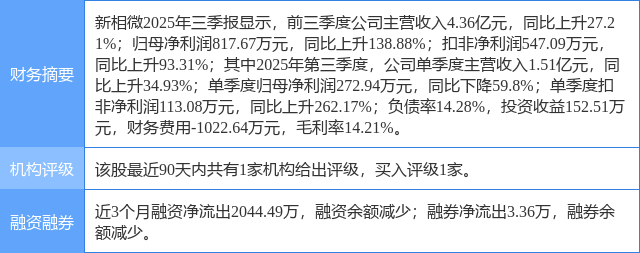 2025年11月7日,中邮证券研究员万玮,吴文吉发布了对新相微的研报《OLED新品开始放量》,该研报对新相微给出“买入”评级。研报中预计公司2025/2026/2027年营收分别为6.4/10.0/14.7亿元,归母净利润分别为0.1/1.0/1.5亿元,维持“买入”评级。证券之星数据中心根据近三年发布的研报数据计算,该研报作者对此股的盈利预测准确度为24.03%。