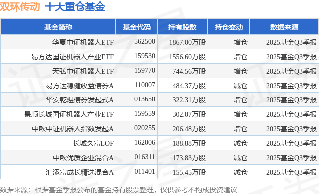 重仓双环传动的前十大公募基金请见下表: