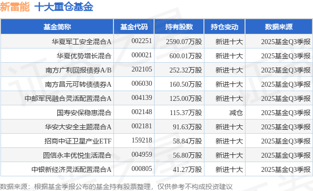 重仓新雷能的前十大公募基金请见下表: