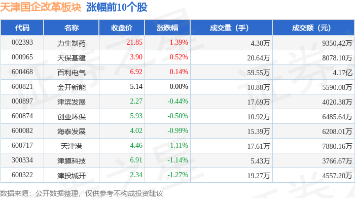 从资金流向上来看,当日天津国企改革板块主力资金净流出2917.31万元,游资资金净流入1435.33万元,散户资金净流入1481.98万元。天津国企改革板块个股资金流向见下表: