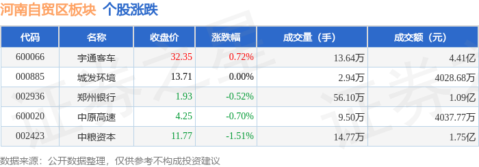 证券之星消息,12月30日河南自贸区板块较上一交易日下跌0.03%,中粮资本领跌。当日上证指数报收于3965.12,下跌0.0%。深证成指报收于13604.07,上涨0.49%。河南自贸区板块个股涨跌见下表: