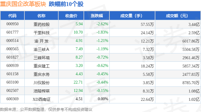 从资金流向上来看,当日重庆国企改革板块主力资金净流出6922.49万元,游资资金净流入434.33万元,散户资金净流入6488.15万元。重庆国企改革板块个股资金流向见下表: