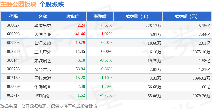 从资金流向上来看,当日主题公园板块主力资金净流入6674.05万元,游资资金净流入1669.78万元,散户资金净流出8343.83万元。主题公园板块个股资金流向见下表: