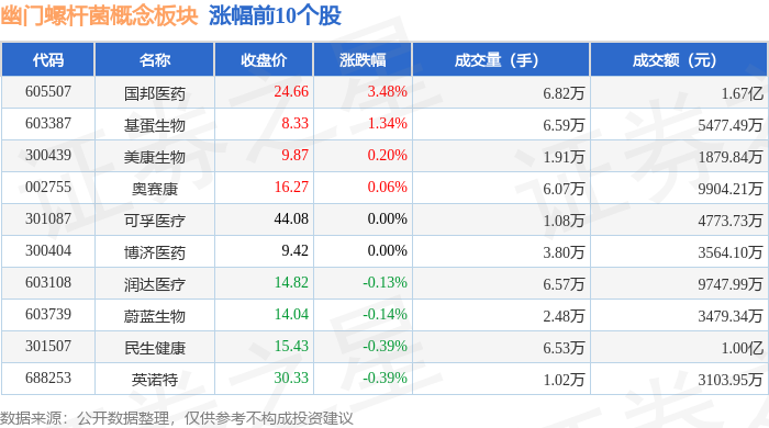 从资金流向上来看,当日幽门螺杆菌概念板块主力资金净流出6.31亿元,游资资金净流入3769.34万元,散户资金净流入5.94亿元。幽门螺杆菌概念板块个股资金流向见下表: