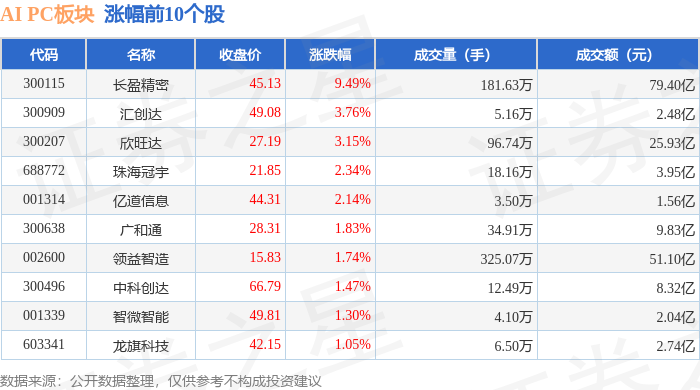 证券之星消息,12月30日AI PC板块较上一交易日上涨1.6%,长盈精密领涨。当日上证指数报收于3965.12,下跌0.0%。深证成指报收于13604.07,上涨0.49%。AI PC板块个股涨跌见下表: