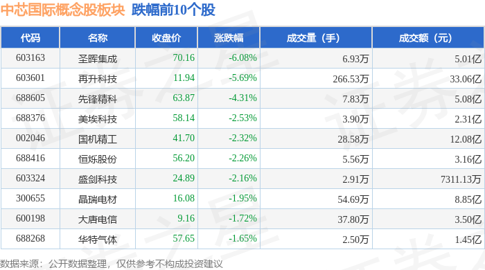 从资金流向上来看,当日中芯国际概念股板块主力资金净流出7.08亿元,游资资金净流出2.78亿元,散户资金净流入9.86亿元。中芯国际概念股板块个股资金流向见下表: