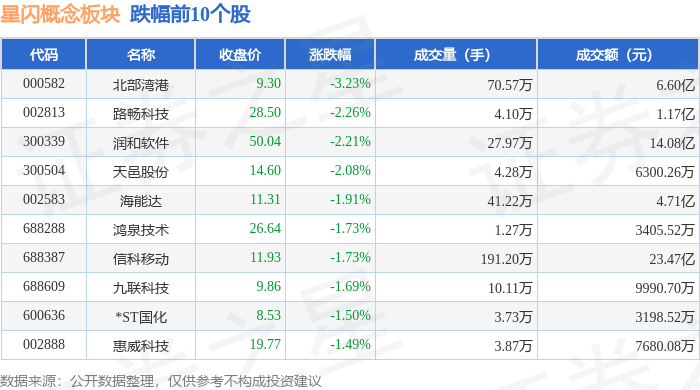 从资金流向上来看,当日星闪概念板块主力资金净流出9.71亿元,游资资金净流出3769.76万元,散户资金净流入10.08亿元。星闪概念板块个股资金流向见下表:
