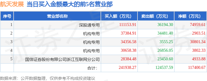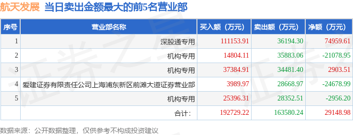 证券之星消息,沪深交易所2025年12月30日公布的交易公开信息显示,航天发展(000547)因日换手率达到20%的前5只证券登上龙虎榜。此次是近5个交易日内第3次上榜。