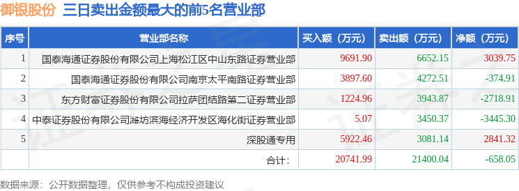 从龙虎榜公布的三日买卖数据来看,北向资金合计净买入2841.32万元。上海中山东路、作手新一等知名游资榜上有名。(知名游资上海中山东路一般指国泰海通证券股份有限公司上海松江区中山东路证券营业部席位、知名游资上海中山东路一般指国泰海通证券股份有限公司上海松江区中山东路证券营业部席位、知名游资作手新一一般指国泰海通证券股份有限公司南京太平南路证券营业部席位,根据市场资料整理,仅供参考)