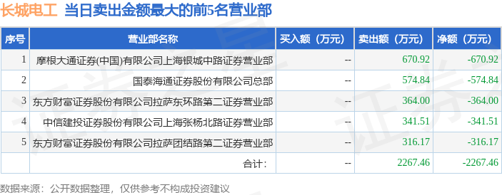 证券之星消息,沪深交易所2025年12月30日公布的交易公开信息显示,长城电工(600192)因有价格涨跌幅限制的日收盘价格涨幅偏离值达到7%的前五只证券登上龙虎榜。此次是近5个交易日内第1次上榜。