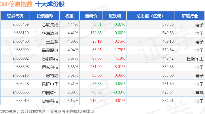 380信息(000111)指数十大成份股详情如下:
