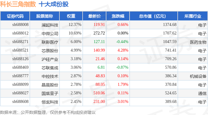 科长三角(000695)指数十大成份股详情如下: