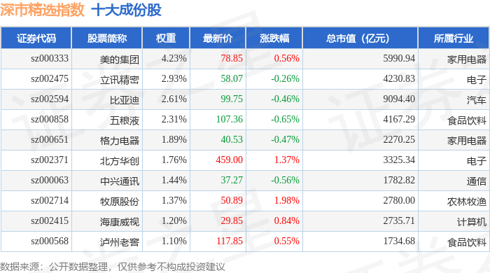 深市精选(399013)指数十大成份股详情如下: