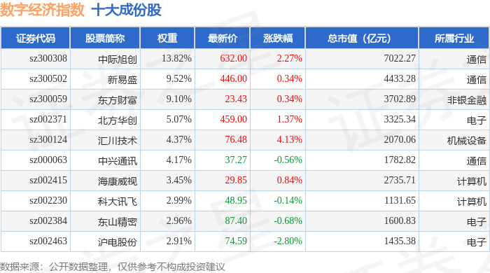 证券之星消息,12月30日,数字经济(399262)指数报收于2921.69点,涨0.69%,成交1233.88亿元,换手率2.32%。当日该指数成份股中,上涨的有28家,卓胜微以8.09%的涨幅领涨,下跌的有20家,沪电股份以2.8%的跌幅领跌。