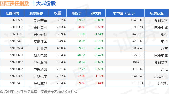 证券之星消息,12月30日,国证责任(399369)指数报收于1527.44点,跌0.13%,成交645.68亿元,换手率0.68%。当日该指数成份股中,上涨的有38家,京基智农以5.9%的涨幅领涨,下跌的有60家,锦波生物以6.06%的跌幅领跌。