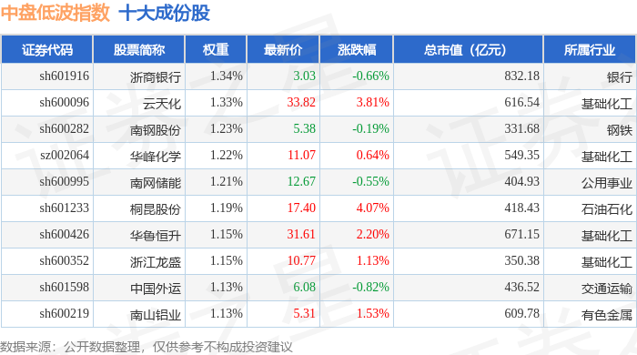 证券之星消息,12月30日,中盘低波(399406)指数报收于13565.46点,跌0.12%,成交355.71亿元,换手率0.84%。当日该指数成份股中,上涨的有33家,桂冠电力以6.01%的涨幅领涨,下跌的有65家,越秀资本以3.33%的跌幅领跌。