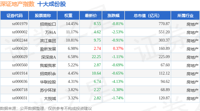 证券之星消息,12月30日,深证地产(399637)指数报收于1739.17点,跌1.14%,成交57.61亿元,换手率2.55%。当日该指数成份股中,上涨的有4家,三湘印象以1.8%的涨幅领涨,下跌的有13家,华联控股以4.13%的跌幅领跌。