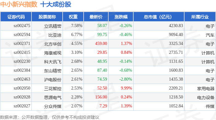 证券之星消息,12月30日,中小新兴(399642)指数报收于2364.05点,涨0.36%,成交1739.54亿元,换手率2.63%。当日该指数成份股中,上涨的有46家,三花智控以9.99%的涨幅领涨,下跌的有48家,金风科技以6.74%的跌幅领跌。