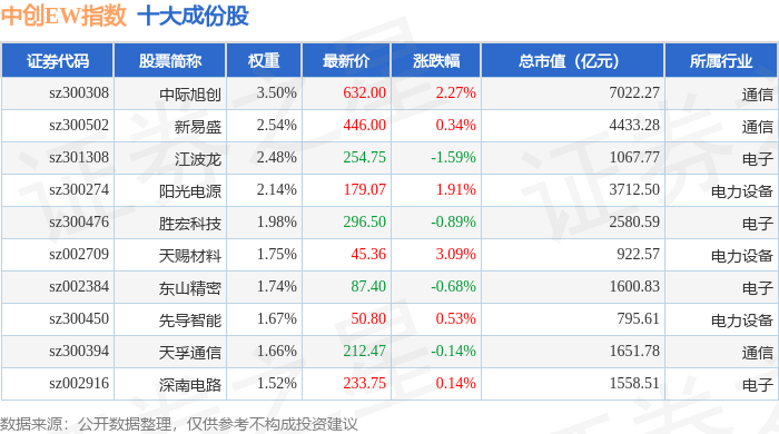证券之星消息,12月30日,中创EW(399660)指数报收于2777.78点,涨0.55%,成交2260.11亿元,换手率1.73%。当日该指数成份股中,上涨的有55家,三花智控以9.99%的涨幅领涨,下跌的有42家,金风科技以6.74%的跌幅领跌。