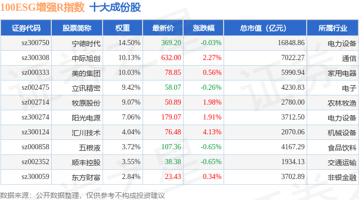 100ESG增强R(470033)指数十大成份股详情如下: