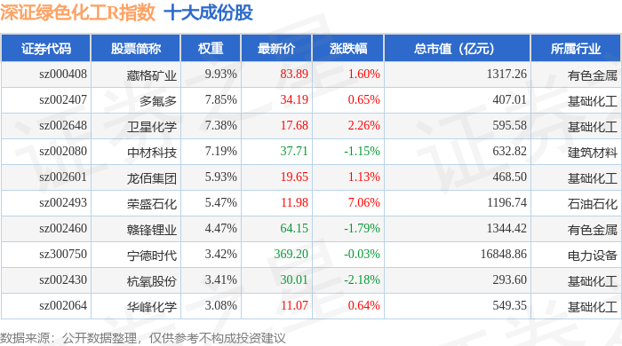 深证绿色化工R(470076)指数十大成份股详情如下: