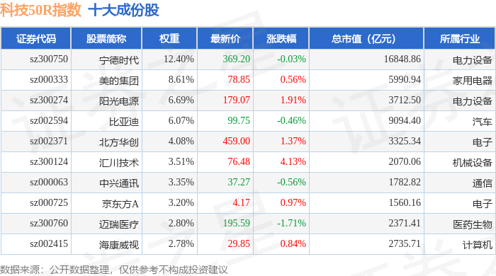 证券之星消息,12月30日,科技50R(470080)指数报收于3798.48点,涨0.71%,成交1223.09亿元,换手率1.92%。当日该指数成份股中,上涨的有31家,三花智控以9.99%的涨幅领涨,下跌的有17家,金风科技以6.74%的跌幅领跌。