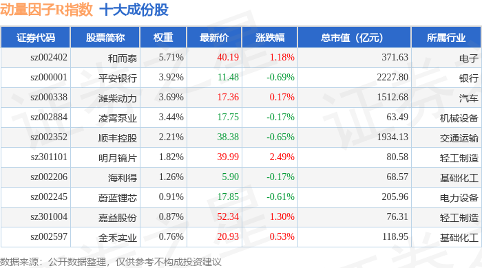 资金流向方面,动量因子R(480057)指数成份股当日主力资金净流入合计1.55亿元,游资资金净流入合计9697.67万元,散户资金净流出合计2.52亿元。成份股资金流向详情见下表: