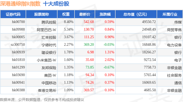 证券之星消息,12月30日,深港通综指R(483005)指数报收于8053.93点,涨0.32%,成交11898.09亿元,换手率1.43%。当日该指数成份股中,上涨的有870家,酷特智能以20.0%的涨幅领涨,下跌的有1328家,浙江世宝以11.45%的跌幅领跌。