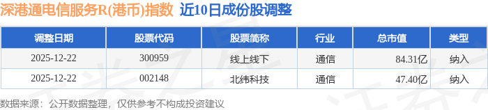 近10日内深港通电信服务R(港币)(483058)指数成份股做了调整,新纳入了2只股票。