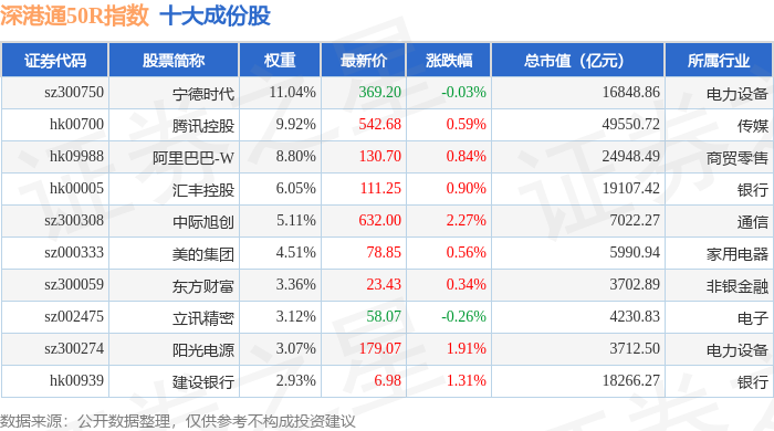 深港通50R(483091)指数十大成份股详情如下: