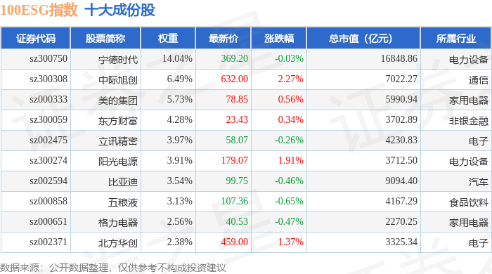 资金流向方面,100ESG(970027)指数成份股当日主力资金净流入合计11.29亿元,游资资金净流出合计23.19亿元,散户资金净流入合计11.91亿元。成份股资金流向详情见下表: