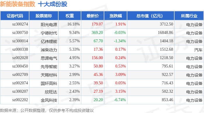 资金流向方面,新能装备(970043)指数成份股当日主力资金净流出合计40.47亿元,游资资金净流入合计6.93亿元,散户资金净流入合计33.53亿元。成份股资金流向详情见下表:
