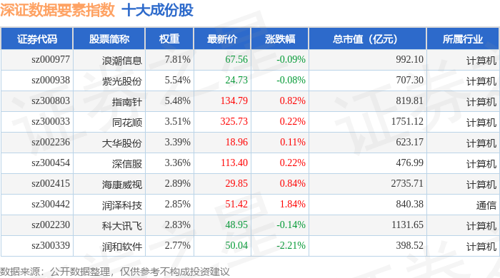 深证数据要素(970053)指数十大成份股详情如下: