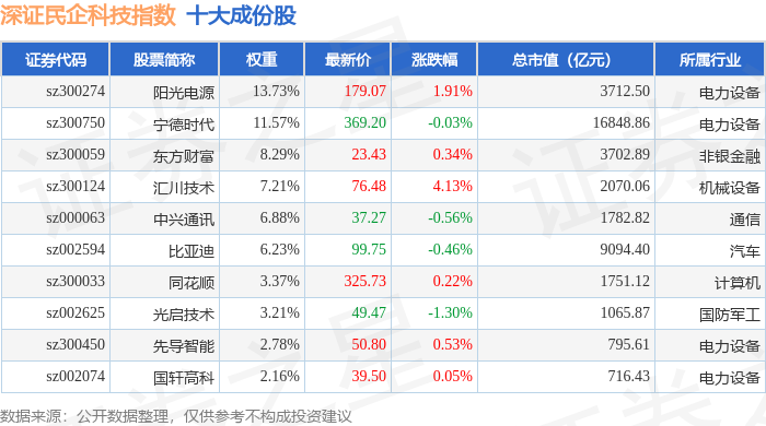 深证民企科技(970059)指数十大成份股详情如下: