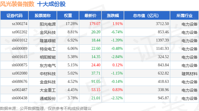 资金流向方面,风光装备(980026)指数成份股当日主力资金净流出合计37.11亿元,游资资金净流入合计9.14亿元,散户资金净流入合计27.97亿元。成份股资金流向详情见下表:
