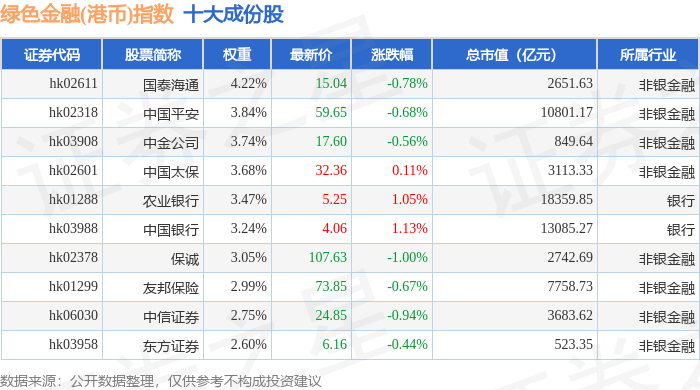 绿色金融(港币)(980053)指数十大成份股详情如下: