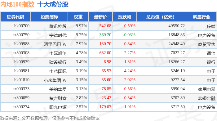 资金流向方面,内地100(983001)指数成份股当日主力资金净流入合计5.47亿元,游资资金净流出合计19.28亿元,散户资金净流入合计13.81亿元。成份股资金流向详情见下表: