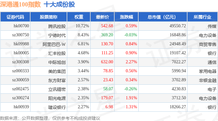 证券之星消息,12月30日,深港通100(983007)指数报收于7261.21点,涨0.54%,成交1835.7亿元,换手率0.45%。当日该指数成份股中,上涨的有61家,三花智控以9.99%的涨幅领涨,下跌的有34家,泡泡玛特以4.55%的跌幅领跌。
