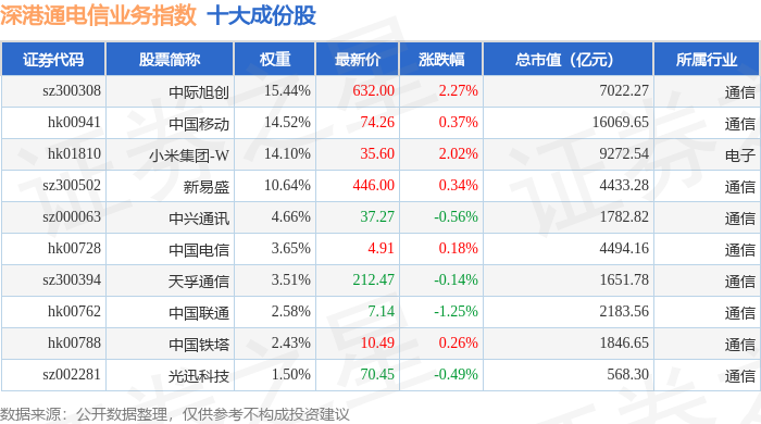 近10日内深港通电信业务(983029)指数成份股做了调整,新纳入了3只股票,剔除了1只股票。