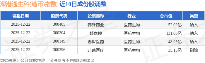 近10日内深港通生科(港币)(983060)指数成份股做了调整,新纳入了3只股票,剔除了1只股票。