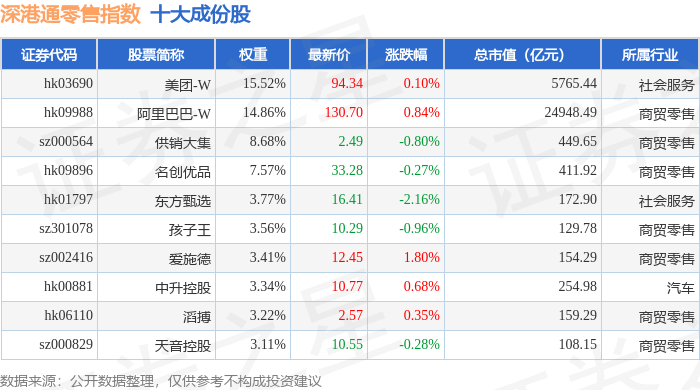 深港通零售(983073)指数十大成份股详情如下: