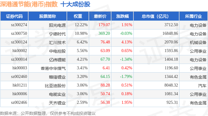 深港通节能(港币)(983086)指数十大成份股详情如下: