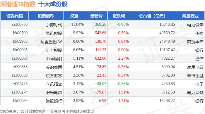 深港通50(983091)指数十大成份股详情如下: