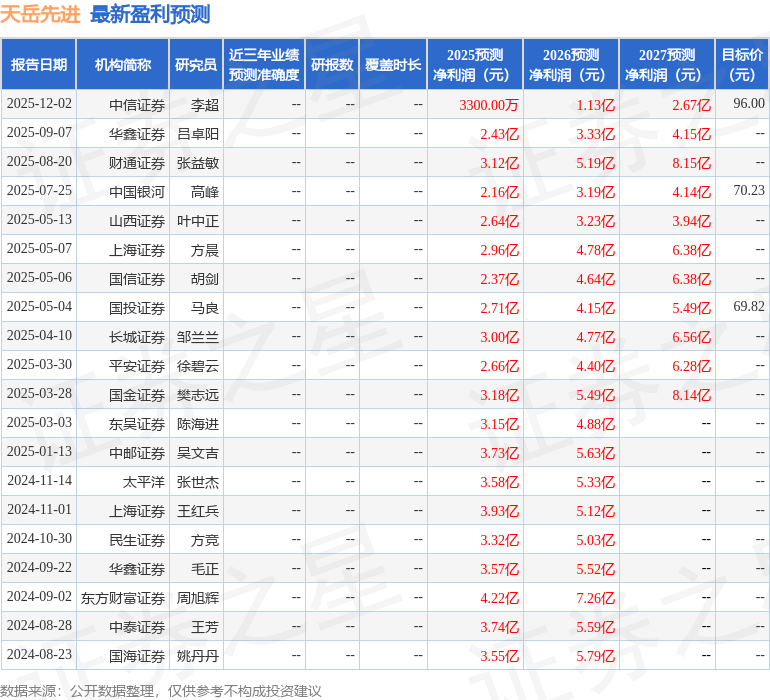 最新盈利预测明细如下:
