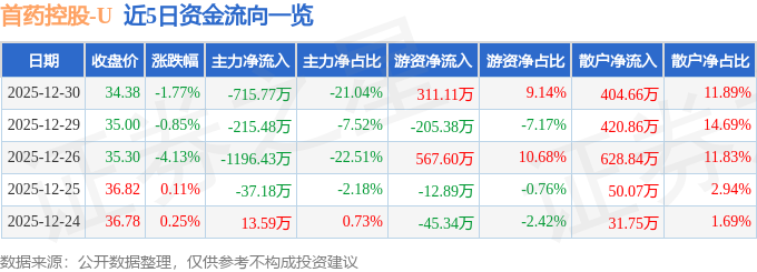 证券之星消息,截至2025年12月30日收盘,首药控股(688197)报收于34.38元,下跌1.77%,换手率1.55%,成交量9901.0手,成交额3402.0万元。