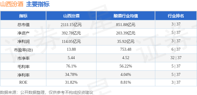 该股主要指标及行业内排名如下: