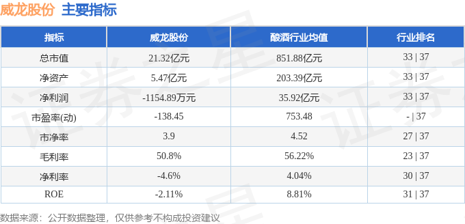 威龙股份2025年三季报显示,前三季度公司主营收入2.51亿元,同比下降17.43%;归母净利润-1154.89万元,同比下降367.48%;扣非净利润-1187.69万元,同比下降455.26%;其中2025年第三季度,公司单季度主营收入6395.98万元,同比下降23.14%;单季度归母净利润-914.71万元,同比下降78.26%;单季度扣非净利润-921.74万元,同比下降61.99%;负债率47.84%,财务费用996.31万元,毛利率50.8%。威龙股份(603779)主营业务:是一家集葡萄种植、生产、销售为一体的葡萄酒企业。