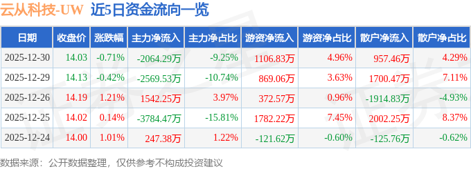 12月30日的资金流向数据方面,主力资金净流出2064.29万元,占总成交额9.25%,游资资金净流入1106.83万元,占总成交额4.96%,散户资金净流入957.46万元,占总成交额4.29%。